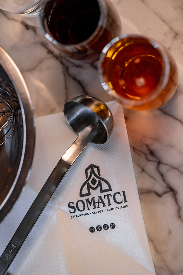 De eerste en enige 10-duizend jarige keukencultuur ter wereld! De bekende sporen uit Çatalhüyük, Anatolië, Kleine-Azië, de Seltsjoekse periode, de Mevlevi keuken, de Ottomaanse keuken, de Konya keuken maar ook gloednieuwe smaken die voortkomen uit de eigen culinaire training van Somatci door de jaren heen zijn te vinden op het menu.